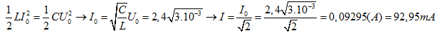 Một mạch dao động LC lí tưởng gồm tụ điện có điện dung 18 nF và cuộn cảm thuần có độ tự cảm 6 µH. Trong mạch đang có dao động điện từ với hiệu điện thế cực đại giữa hai bản tụ điện là 2,4 V. Cường độ dòng điện hiệu dụng trong mạch có giá trị là