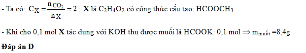 Đốt cháy 0,01 mol este X đơn chức bằng lượng oxi vừa đủ, thu được 448 ml khí CO2 (đktc). Mặt