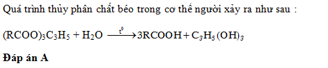 Ở ruột non của cơ thể người nhờ tác dụng xúc tác của các enzim như lipaza và dịch mật, chất béo bị thủy phân thành :