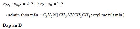 Đốt cháy hoàn toàn một amin đơn chức, no, bậc 2 thu được CO2 và H2O với tỷ lệ mol tương ứng là 2:3. Tên gọi của amin đó là