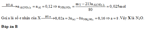 Hòa tan hết 3,24 gam bột Al trong dung dịch HNO3 dư, thu được 0,02 mol khí X duy nhất và dung dịch Y