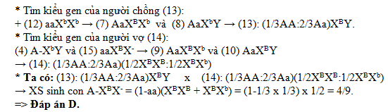 Xác suất sinh một con gái không bị bệnh nào của cặp vợ chồng (13) và (14) là