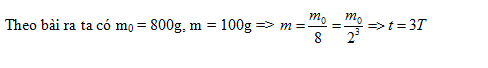 Một chất phóng xạ có chu kì bán rã T= 7 ngày. Nếu lúc đầu có 800g chất ấy thì sau bao lâu còn lại 100g?