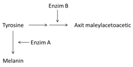 Bệnh bạch tạng xảy ra do thiếu hụt gen A quy định enzym ở bước A, còn bệnh Alkaptonuria (AKU) là do thiếu hụt gen B quy định enzym ở bước B, bị 2 bệnh nếu thiếu cả 2 enzym trong chuỗi phản ứng tóm tắt dưới đây: