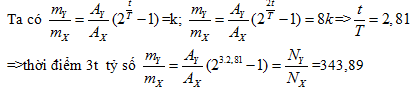 Ở thời điểm 3t, tỉ số số hạt của Y và X trong mẫu là