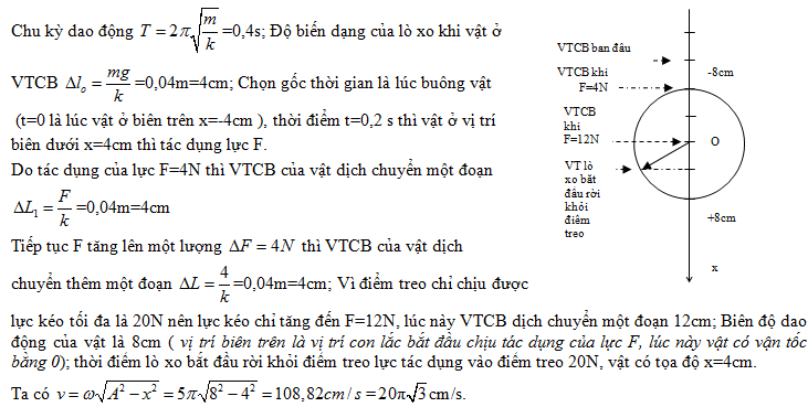 Một lò xo nhẹ, có độ cứng k = 100 N/m được treo vào một điểm cố định, đầu dưới treo