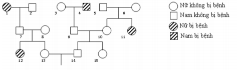 Cho biết không phát sinh đột biến mới. Theo lí thuyết, phát biểu nào sau đây đúng về phả hệ này?