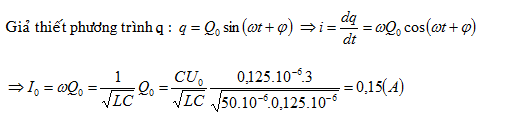 Một mạch dao động điện từ gồm một tụ điện có điện dung 0,125 μF và một cuộn cảm có độ tự cảm 50mH. Điện trở thuần của mạch không đáng kể. Hiệu điện thế cực đại giữa hai bản tụ điện là 3 V. Cường độ dòng điện cực đại trong mạch là