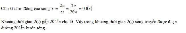Một nguồn phát sóng dao động theo phương trình u=asin20πt (cm) với t tính bằng giây. Trong khoảng thời gian 2s, sóng này truyền đi được quãng đường bằng bao nhiêu lần bước sóng?