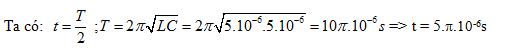 Một mạch dao động điện từ LC lí tưởng gồm cuộn cảm thuần có độ tự cảm 5 µH và tụ điện có điện dung 5µF. Trong mạch có dao động điện từ tự do. Khoảng thời gian giữa hai lần liên tiếp mà điện tích trên một bản tụ điện có độ lớn cực đại là