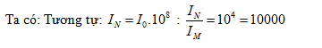 Một sóng âm truyền trong không khí. Mức cường độ âm tại điểm M và tại điểm N lần lượt là 40 dB và 80 dB. Cường độ âm tại N lớn hơn cường độ âm tại M