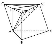 Cho lăng trụ ABC.A’B’C’ có đáy là tam giác vuông tại A, AB = a, với \(AC = a\sqrt 2 \). Biết rằng \(\widehat {((ABC),(AB'C'))} = {60^0}\) và hình chiếu của A lên (A’B’C’) là trung điểm H của A’B’. Tính bán kính R của mặt cầu ngoại tiếp tứ diện AHB’C’?