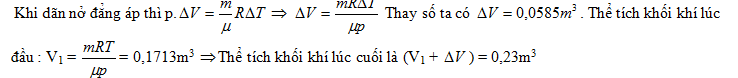 Trong xilanh chứa 2g không khí ở nhiệt độ 200C và áp suất 9,8.105Pa. Đốt nóng khí để dãn nở đẳng áp cho tới khi tăng thêm 1000C. Tìm thể tích khối khí ở cuối quá trình dãn nở biết khối lượng mol của không khí là