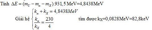 Hạt nhân \({}^{234}U\) đứng yên, phân rã α biến đổi thành hạt nhân X. Biết khối lượng của