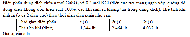 Vậy x = 0,04 ; y=0,04 ; a=0,14