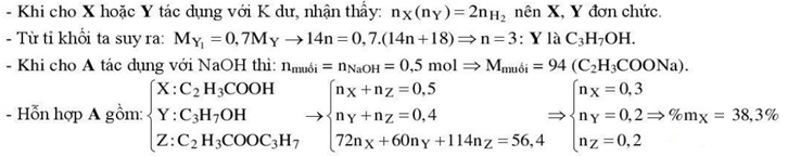 Cho hỗn hợp A vừa được pha chế từ một axit hữu cơ X, một ancol Y và este Z tạo thành từ X