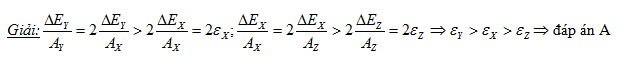 Cho ba hạt nhân X, Y, Z có số nuclon tương ứng là AX, AY, AZ với AX = 2AY = 0,5AZ. Biết năng lượng