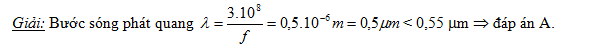 Một chất có khả năng phát ra ánh sáng phát quang với tần số 6.1014Hz. Khi dùng ánh sáng có