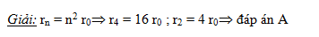 Theo mẫu nguyên tử Bo, bán kính quĩ đạo K của electron trong nguyên tử hidro là r0. Khi electron chuyển từ quĩ đạo N về quĩ đạo L thì bán kính quĩ đạo giảm bớt