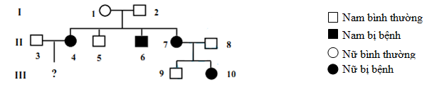 Cho sơ đồ phả hệ phản ánh sự di truyền của một bệnh di truyền (do một gen có hai alen qui