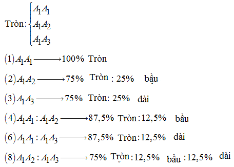 (8) 75% cây quả tròn : 12,5% cây quả bầu : 12,5% cây quả dài.