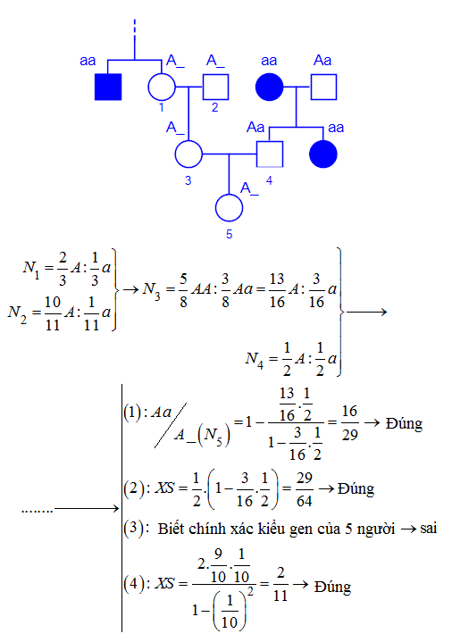 (4) Xác suất để bố đẻ của người vợ mang alen gây bệnh là 2/11