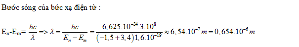 Nguyên tử hiđrô chuyển từ trạng thái dừng có năng lượng En= -1,5 eV sang trạng thái dừng có
