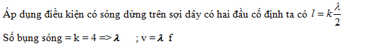 Một sợi dây AB có chiều dài 1 m căng ngang, đầu A cố định, đầu B gắn với một nhánh của âm thoa dao động điều hoà với tần số 20 Hz. Trên dây AB có một sóng dừng ổn định với 4 bụng sóng, B được coi là nút sóng. Tốc độ truyền sóng trên dây là
