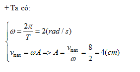 Một chất điểm dao động điều hòa với chu kì T = π (s). Khi chất điểm đi qua vị trí cân bằng thì tốc độ của nó bằng 8 cm/s. Biên độ của dao động là