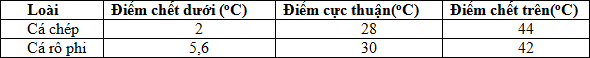 Theo dõi về giới hạn chịu nhiệt của cá chép và cá rô phi ở Việt Nam, người ta thu được bảng số liệu sau: