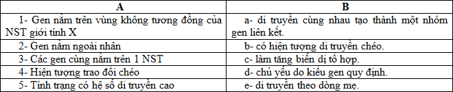 Tổ hợp ghép đôi giữa mỗi thông tin ở cột A với một thông tin ở cột B nào sau đây đúng?