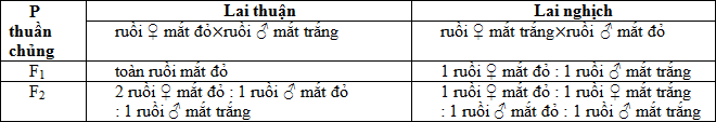 Ở ruồi giấm, tiến hành phép lai thuận nghịch và thu được kết quả như sau: