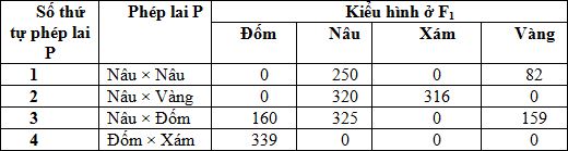 Ở một loài động vật, màu lông do các alen thuộc một locus gen quy định. Người ta đã thực hiện 4 phép lai và thu được kết quả như sau: