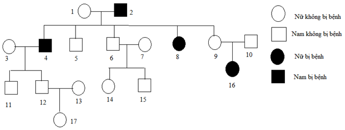 Phả hệ ở hình bên mô tả sự di truyền một bệnh ở người do một gen có 2 alen quy định. Cho