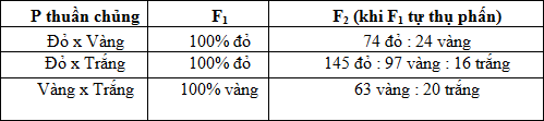 Có ba dòng thuần chủng khác nhau về màu hoa: hoa đỏ, hoa vàng và hoa trắng. Cho các dòng khác nhau