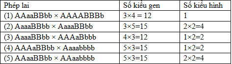 (3) Có 2 phép lai cho 15 kiểu gen và 4 kiểu hình.