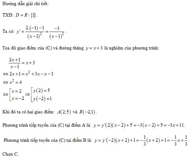 Tìm các giao điểm của đồ thị hàm số \((C)\) với đường thẳng \(y=x+3.\)