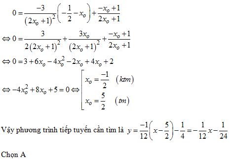 Đường thẳng \(\Delta \) đi qua giao điểm đó nên thay tọa độ giao điểm đó vào phương trình đường thẳng \(\Delta \) tìm được \(x_0.\) Từ đó suy ra phương trình tiếp tuyến cần lập.