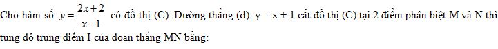 \( \Rightarrow \left\{ \begin{array}{l}{x_I} = \frac{{{x_M} + {x_N}}}{2}\\{y_I} = \frac{{{y_M} + {y_N}}}{2}\end{array} \right..\)