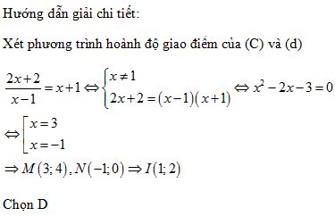 Xác định tọa độ giao điểm \(M\) và \(N\) của \(d\) và \((C).\)
