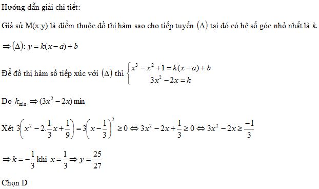 \(\Rightarrow k \, \, Min \Leftrightarrow f'(x_0) \, \, Min.\)
