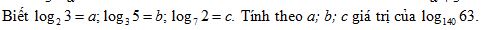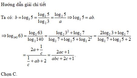 Cách 1: Tách biểu thức \({\log _{140}}6\) theo biểu thức của \({\log _{2}}3,\) \(\log_3 5\) và \({\log _{7}}2\) bằng các công thức của hàm logarit sau đó thay \(a, \, \, b\) và \(c\) vào biểu thức để chọn đáp án đúng.