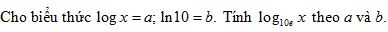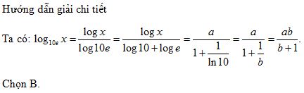 Cách 1: Biến đổi biểu thức \({\log _{10e}} x\) theo biểu thức của \(\log x\) và \(\ln 10\) bằng các công thức của hàm logarit sau đó thay \(a\) và \(b\) vào biểu thức để chọn đáp án đúng.