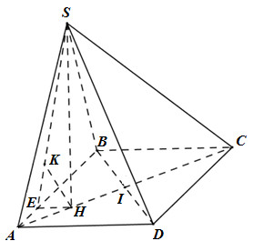 Cho hình chóp S.ABCD có đáy là hình chữ nhật tâm I, \(AB = a,BC = a\sqrt 3 \), tam giác SAC vuông tại S. Hình chiếu vuông góc của S xuống (ABCD) trùng với trung điểm H của đoạn AI. Khoảng cách từ H đến (SAB) là: