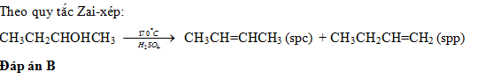 Khi đun nóng CH3CH2CH(OH)CH3 (butan-2-ol) với H2SO4 đặc, 1700C thì thu được sản phẩm chính là