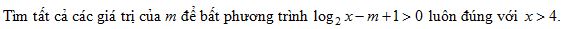 Ta có: \({\log _2}x - m + 1 > 0\)