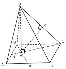 Cho hình chóp \(S.ABCD\) có đáy \(ABCD\) là hình vuông cạnh \(a\). Gọi \(M,\,\,N\) lần lượt là trung