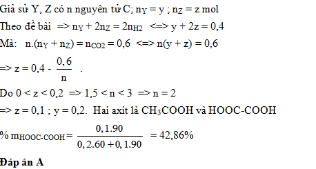Hỗn hợp X gồm axit Y đơn chức và axit Z hai chức (Y, Z có cùng số nguyên tử cacbon). Chia X thành