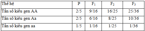 Một quần thể thực vật, alen A quy định hoa đỏ trội không hoàn toàn so với alen a quy định hoa trắng, kiểu gen Aa quy định hoa hồng. Nghiên cứu thành phần kiểu gen của quần thề này qua các thế hệ, người ta thu được kết quả ở bảng sau: