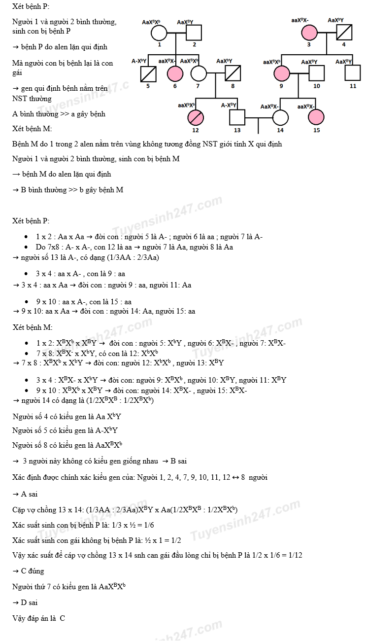Phả hệ ở hình bên mô tả sự di truyền 2 bệnh ở người: Bệnh P do một trong hai alen của một